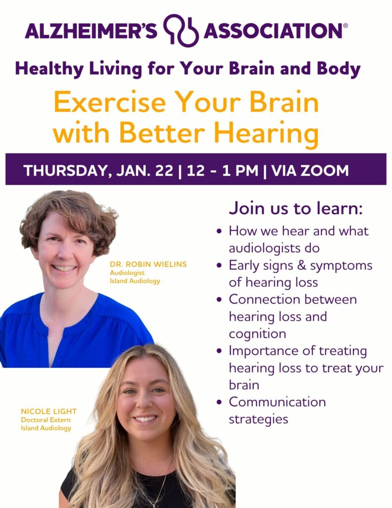 Join us for this statewide virtual education program with Dr. Robin Wielens, founder and audiologist with Island Audiology in Honolulu, as she explores the connection between hearing and brain health. Participants will learn how hearing loss affects the brain, why early detection matters, and practical steps to protect both hearing and cognitive health at any age.